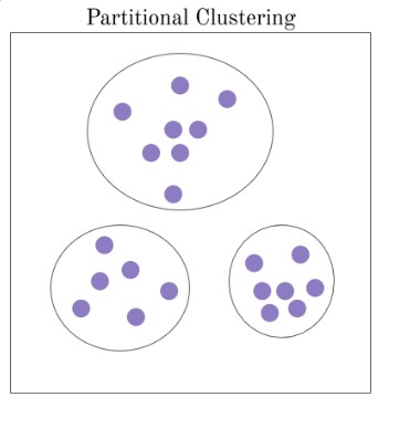 - A partizione: in questo caso sappiamo in precedenza quanti k cluster dovremo trovare, ogni elemento analizzato quindi viene spostato di volta in volta finché non si trovano tutti i k cluster che sappiamo aver bisogno. In questo caso si parla quindi di clustering specifici, ed è opportuno per una quantità di dati medio/piccolo.