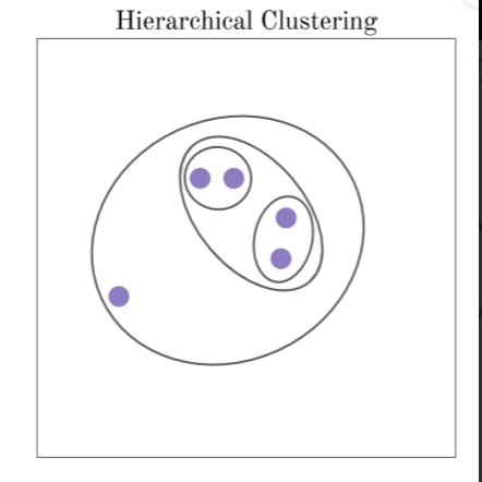 - Gerarchico: in questa tipologia non forniamo in anticipo quanti k cluster ci saranno, infatti in questo caso ogni volta che un elemento viene inserito, si crea un cluster e, se si dovessero trovare degli elementi più specifici, si va a creare un “sottogruppo” dedicato a quegli elementi specifici. Qui si parla invece di clustering a più livelli, adatto anche a una quantità di dati medio/grande; ma attenzione, in quanto una volta creati i vari sottogruppi, gli elementi non si possono più spostare!